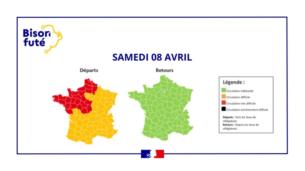 Samedi, la situation s’améliore légèrement dans le sens des départs, mais les routes restent très chargées. Il est conseillé de quitter l’Île-de-France après 17 heures. Les premières perturbations sont prévues dès 7 heures du matin dans les Yvelines. Dans le sud du pays, la circulation entre Bordeaux et Bayonne est très perturbée de 10 heures à 16 heures. La situation sera similaire entre Toulouse et Narbonne.