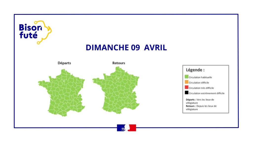 Les retours du week-end de Pâques, lundi, s’annoncent également très perturbés, avec des difficultés en fin de matinée près des zones côtières. Bison futé conseille aux usagers de rejoindre les grandes métropoles avant 11 heures. Les axes les plus encombrés seront l’A13, l’A10 et l’A7. Les Parisiens et les Lyonnais devront s’armer de patience pour rentrer chez eux, avec des complications prévues jusqu’à tard dans la soirée.