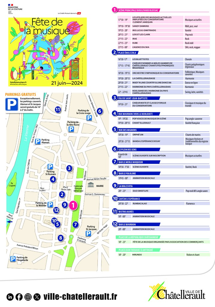 Une initiative qui vise Ă encourager la participation massive des habitants et des visiteurs venus de loin pour profiter de cette soirĂ©e musicale. La FĂȘte de la Musique de ChĂątellerault est plus qu'un simple Ă©vĂ©nement ; c'est une cĂ©lĂ©bration de la diversitĂ© musicale et un moment de partage pour toute la communautĂ©.