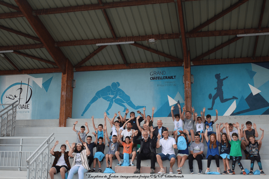 Le club de rugby Ovalie Grd Châtellerault Pleumartin a inauguré ce jeudi 11 Juillet 2024 une fresque vibrante et colorée sur la tribune de son stade